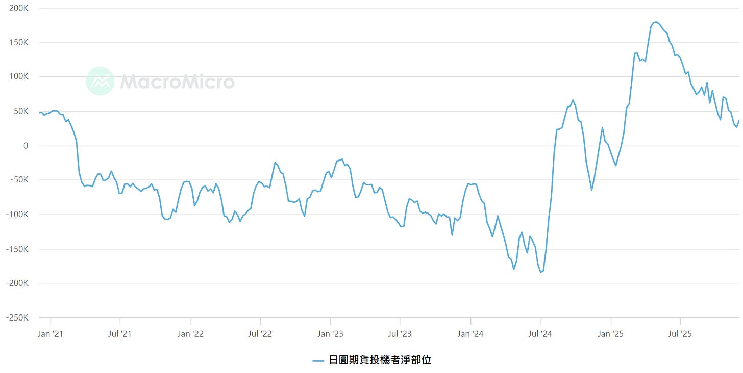 日圓期貨投機者淨部位,資料來源 : 財經M平方