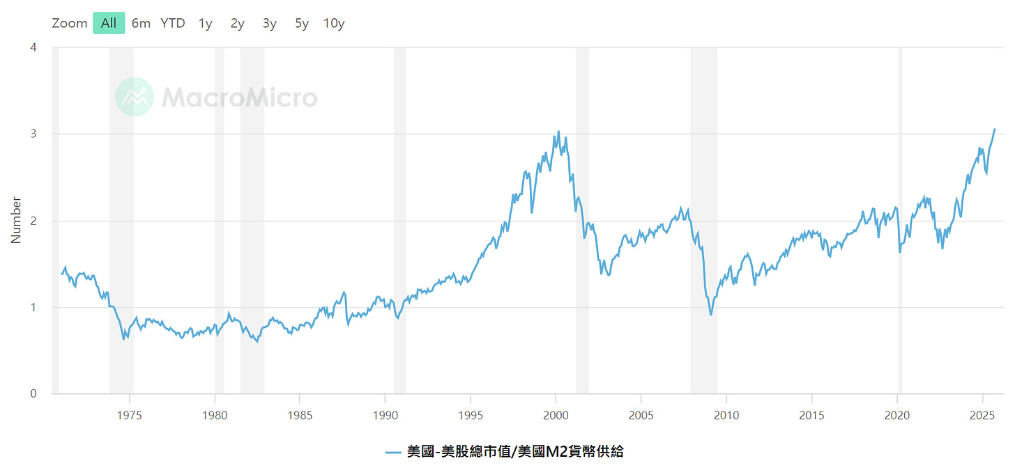 美股市值/M2,資料來源 : MacroMicro財經M平方