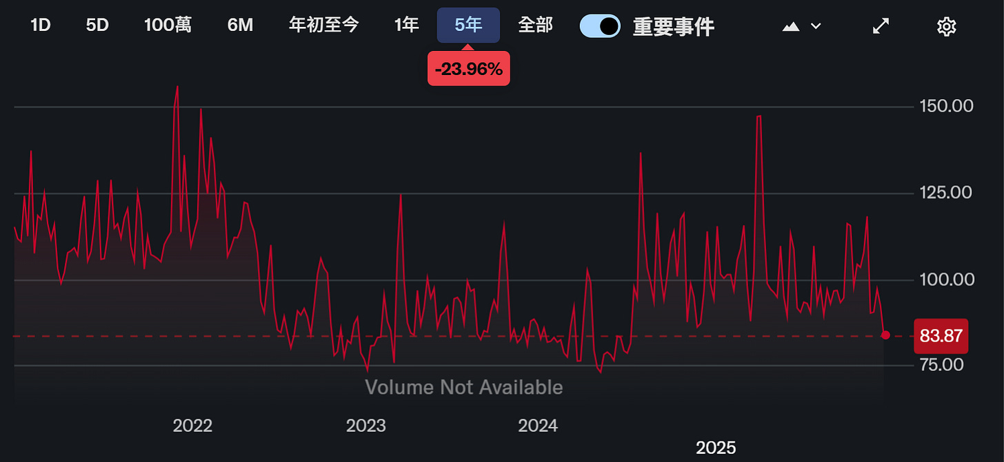 VVIX :如果 VIX 是「市場的恐懼」,那麼 VVIX 就是解讀為「市場對恐懼會增強的恐懼」,VVIX若在110-120,代表避險需求正在強化;若逼迫近150以上,市場已陷入「恐懼的波動」,資料來源 : yahoo finance