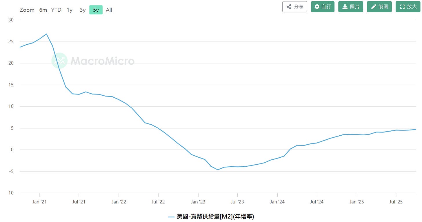 美國M2年增率,資料來源 : MacroMicro財經M平方