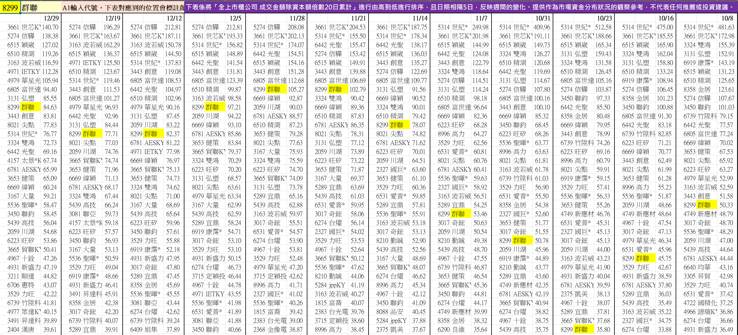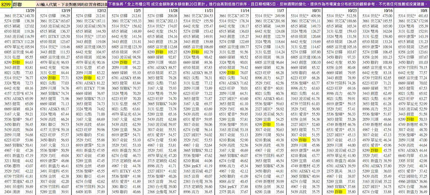 (舉例 : 8299群聯,10/8-12/29的排名變化如下)