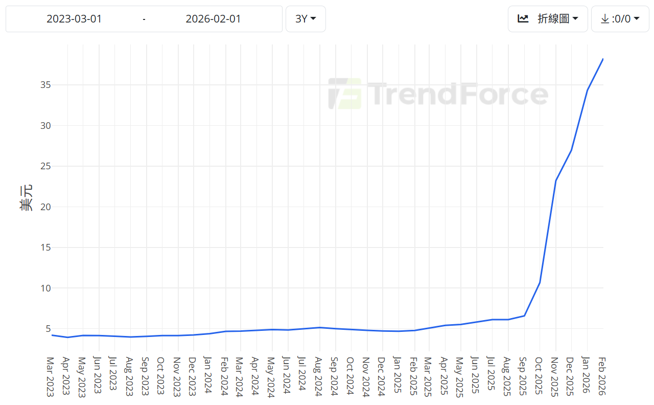 DRAM主流現貨價格,資料來源 : DATATRACK