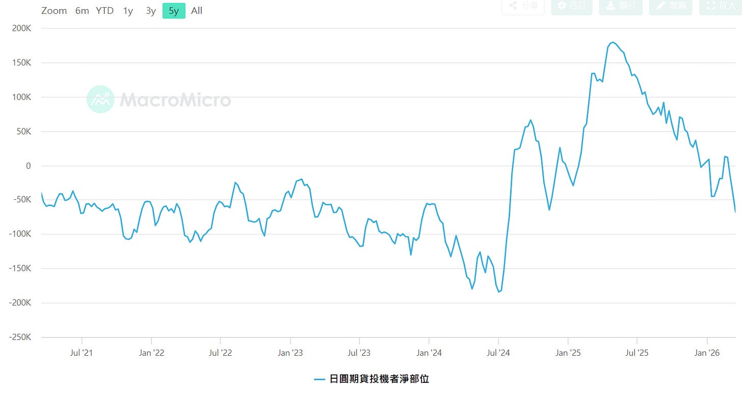 日圓期貨投機者淨部位,資料來源 : 財經M平方