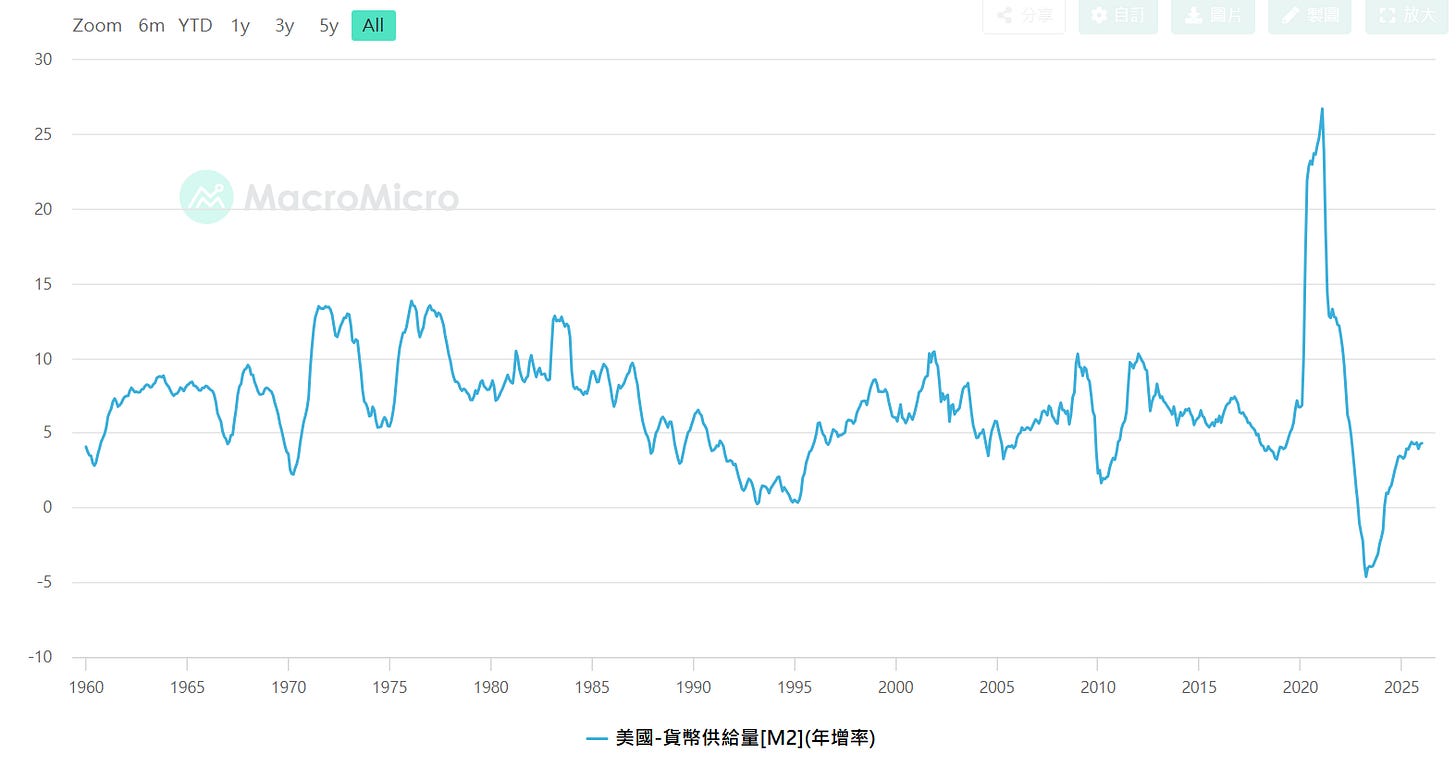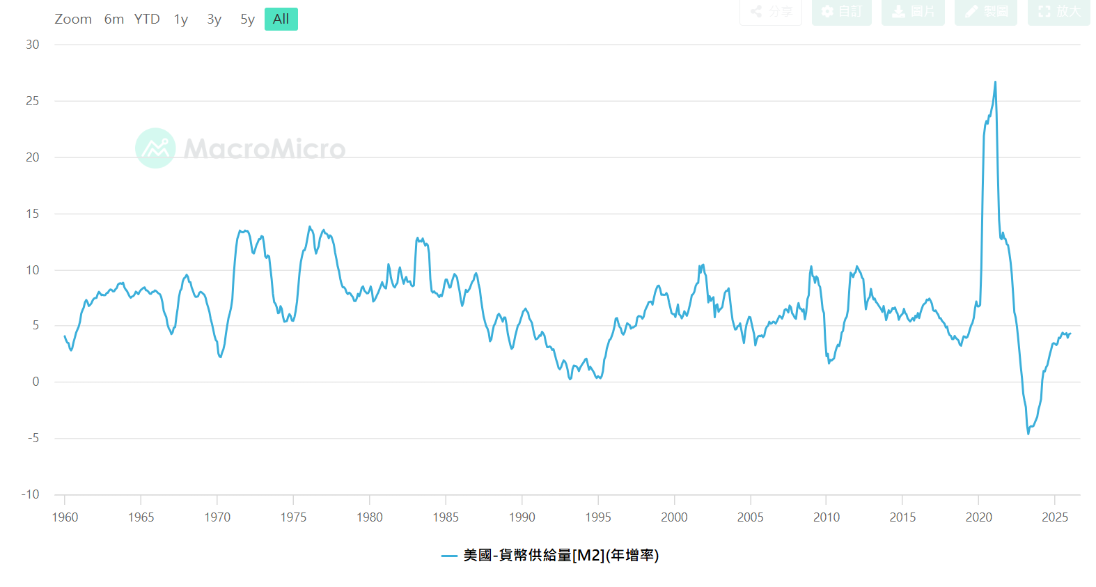 美國M2年增率,資料來源 : MacroMicro財經M平方