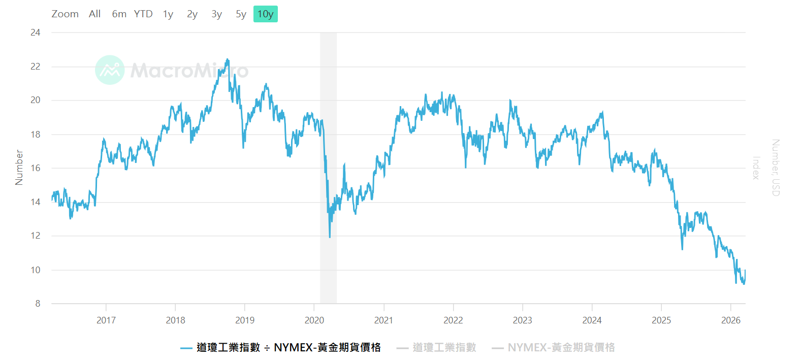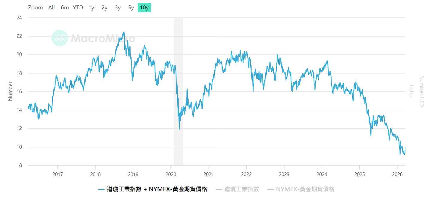 道瓊黃金比,資料來源 : 財經M平方,警戒值 : 5