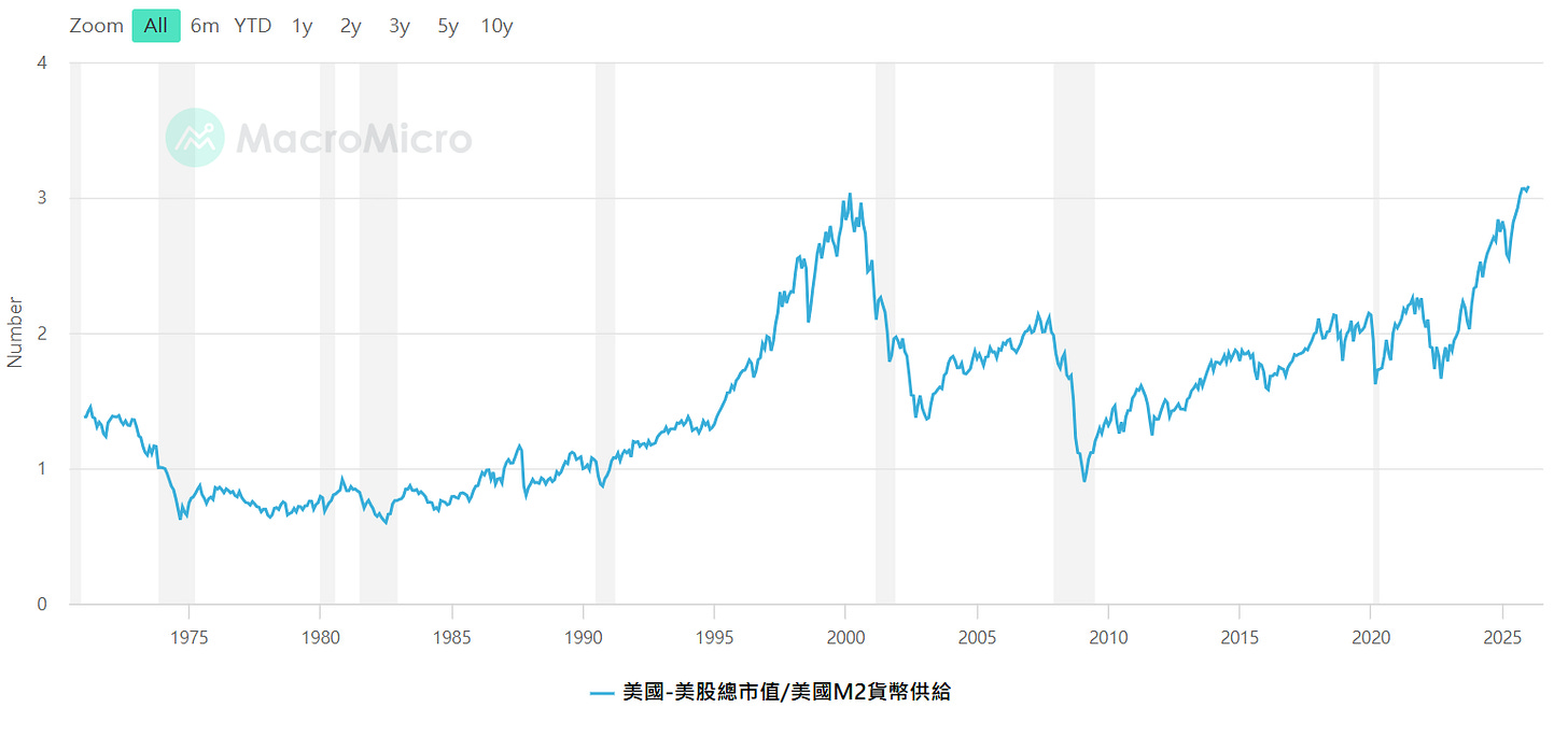 美股市值/M2,資料來源 : MacroMicro財經M平方