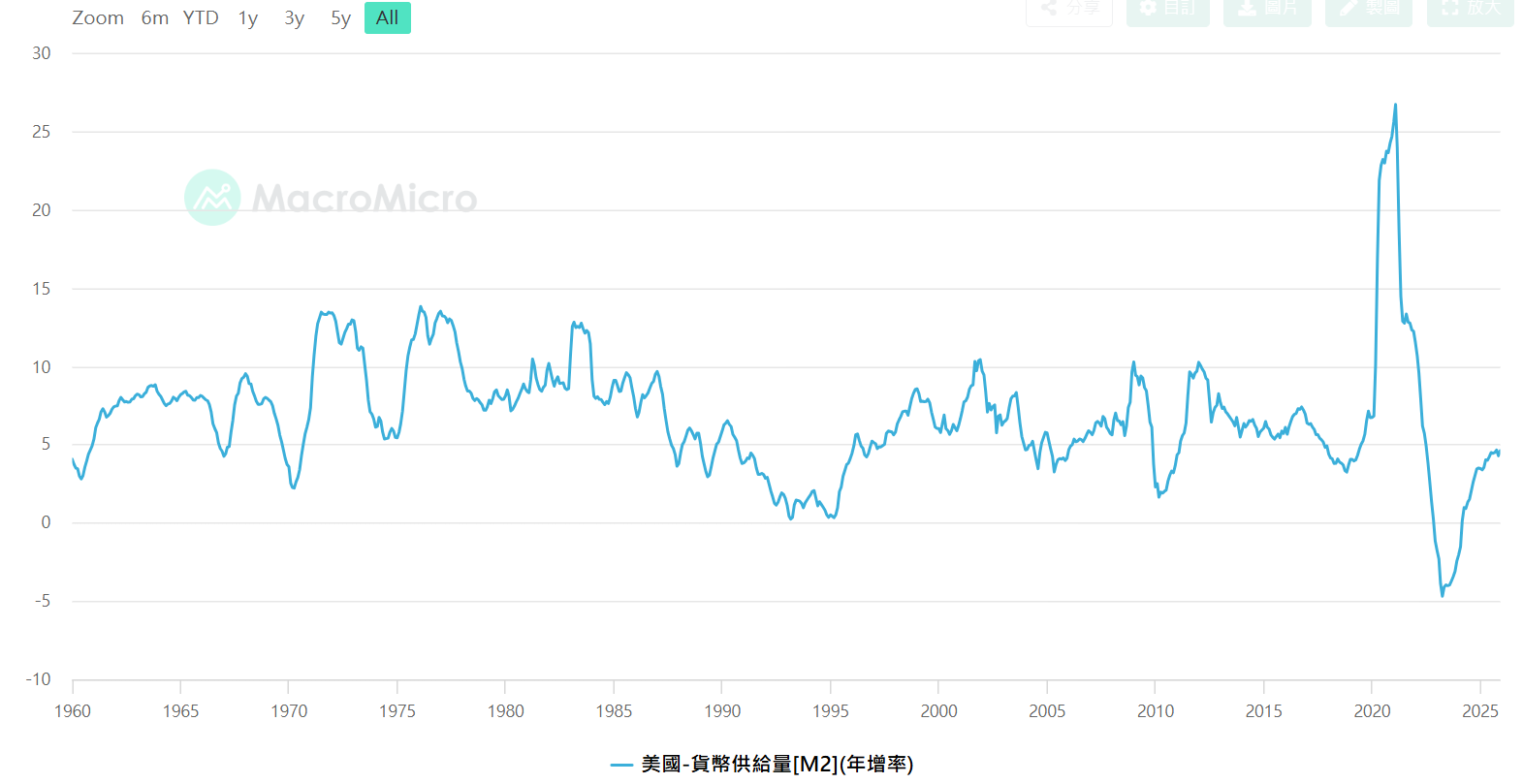 美國M2年增率,資料來源 : MacroMicro財經M平方