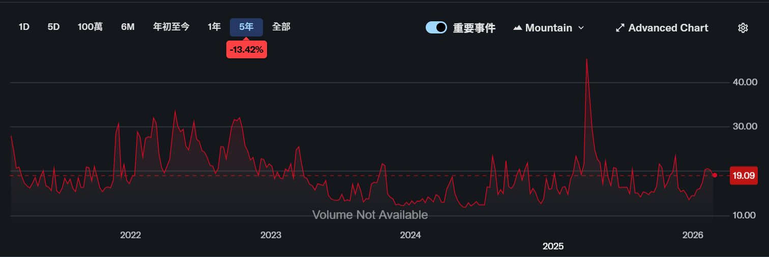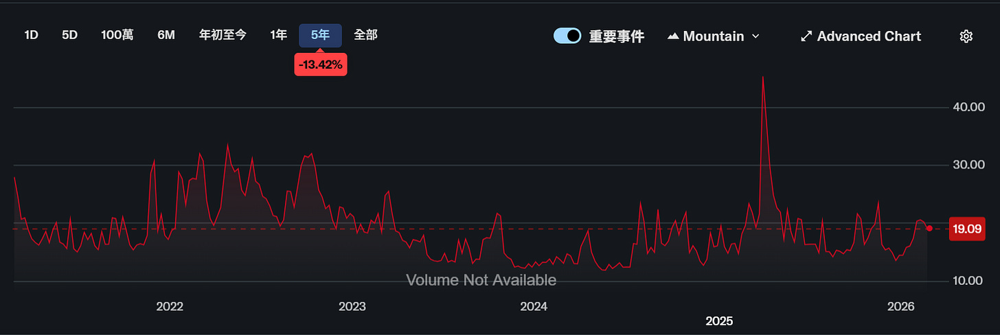 VIX :期權市場對未來 30 天標普 500 波動率預期,VIX長期平均約在19左右。若低於15,代表市場平靜;超過25,開始進入不安;若衝破30或40,多半是危機時刻,但它只能告訴你市場「表面的恐懼」,資料來源 : yahoo finance