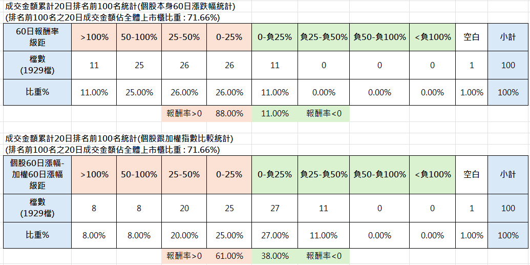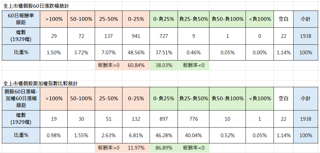 60日報酬率檔數統計