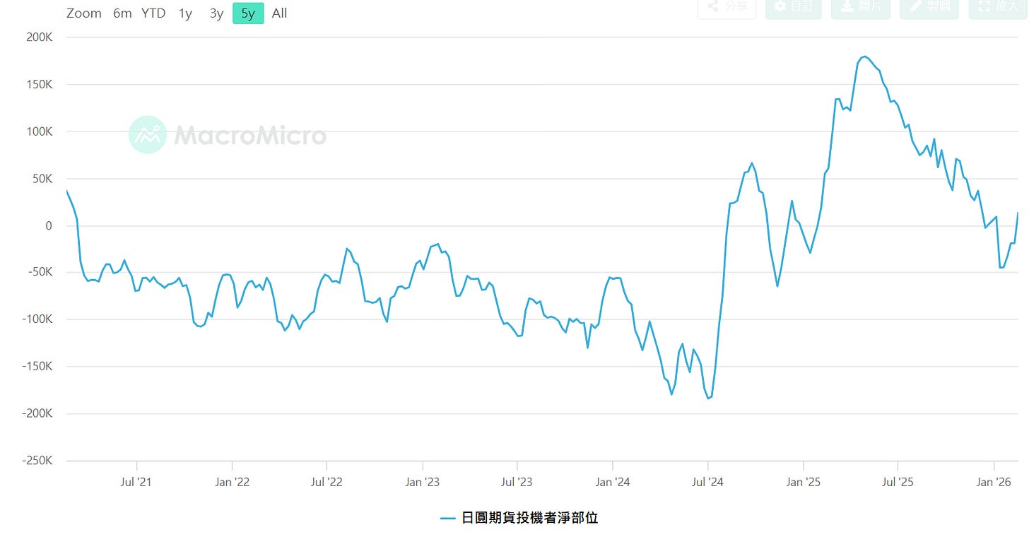 日圓期貨投機者淨部位,資料來源 : 財經M平方