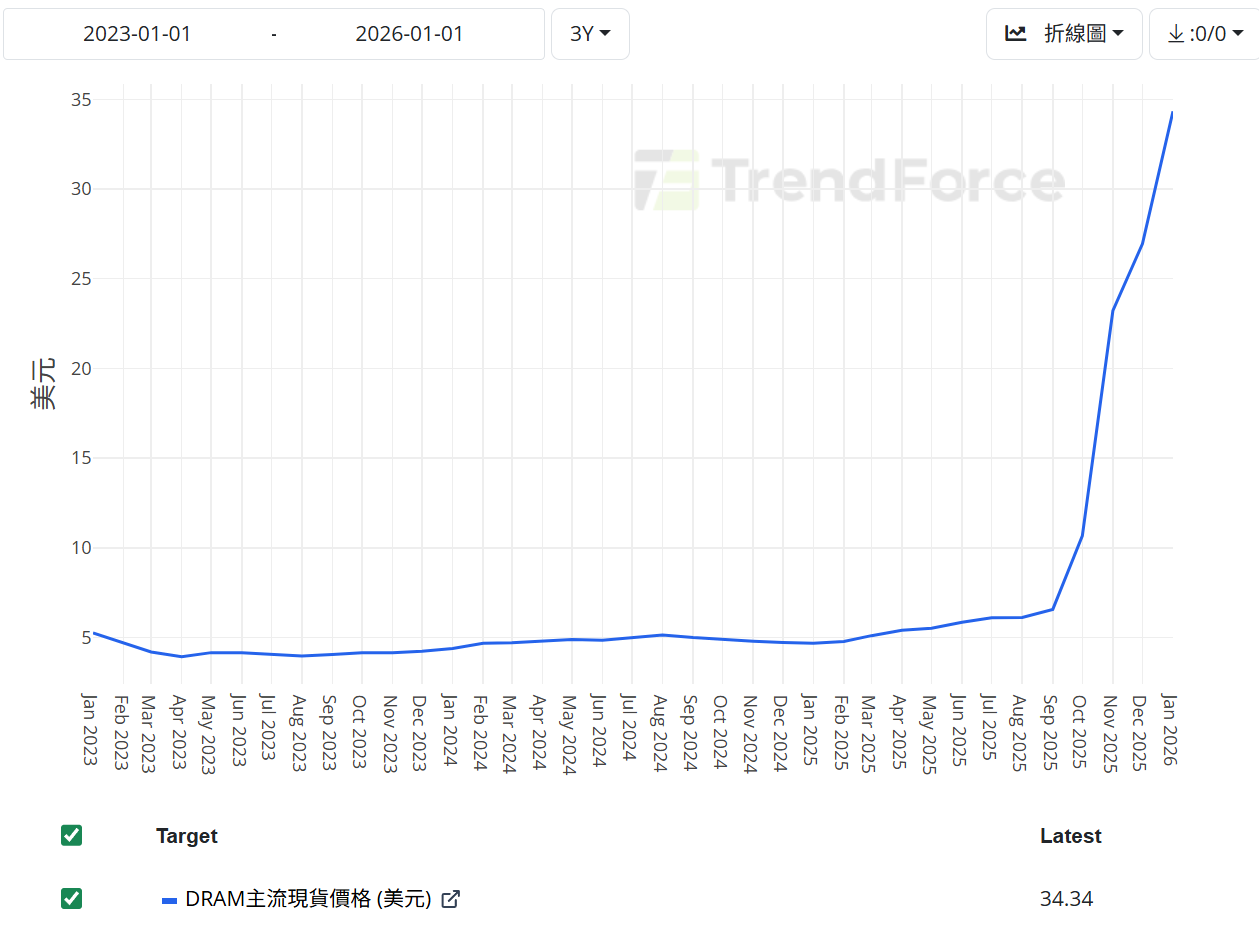 DRAM主流現貨價格,資料來源 : DATATRACK
