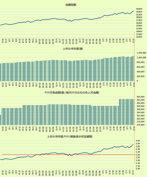 上市公司市值 / M1B金額 = 3.74