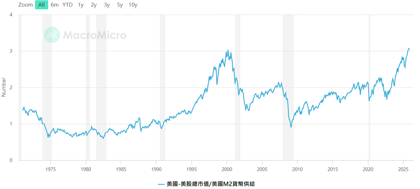 美股市值/M2,資料來源 : MacroMicro財經M平方
