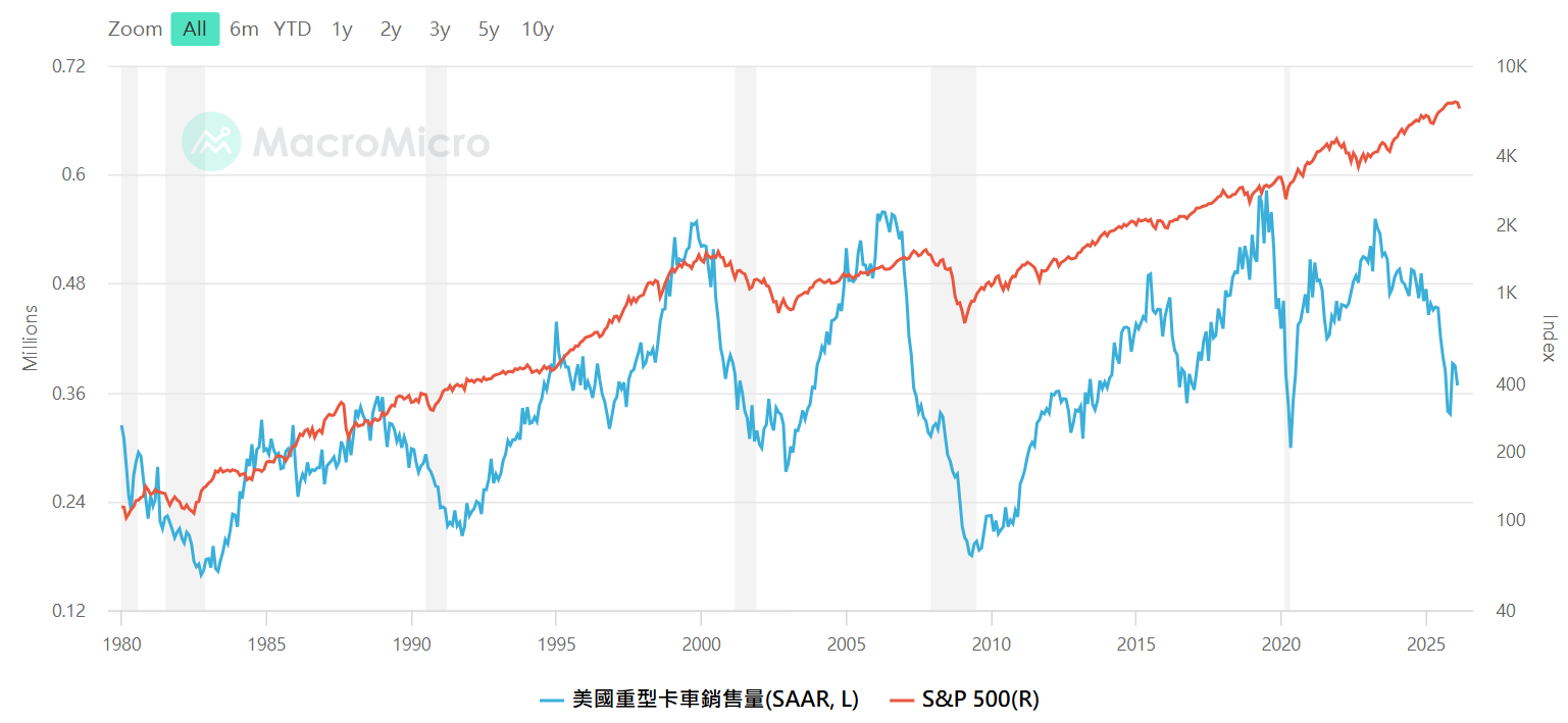 柯博文指數 (美國超過 6.35 公噸的卡車銷售量),資料來源 : MacroMicro財經M平方,智股網FB貼文連結