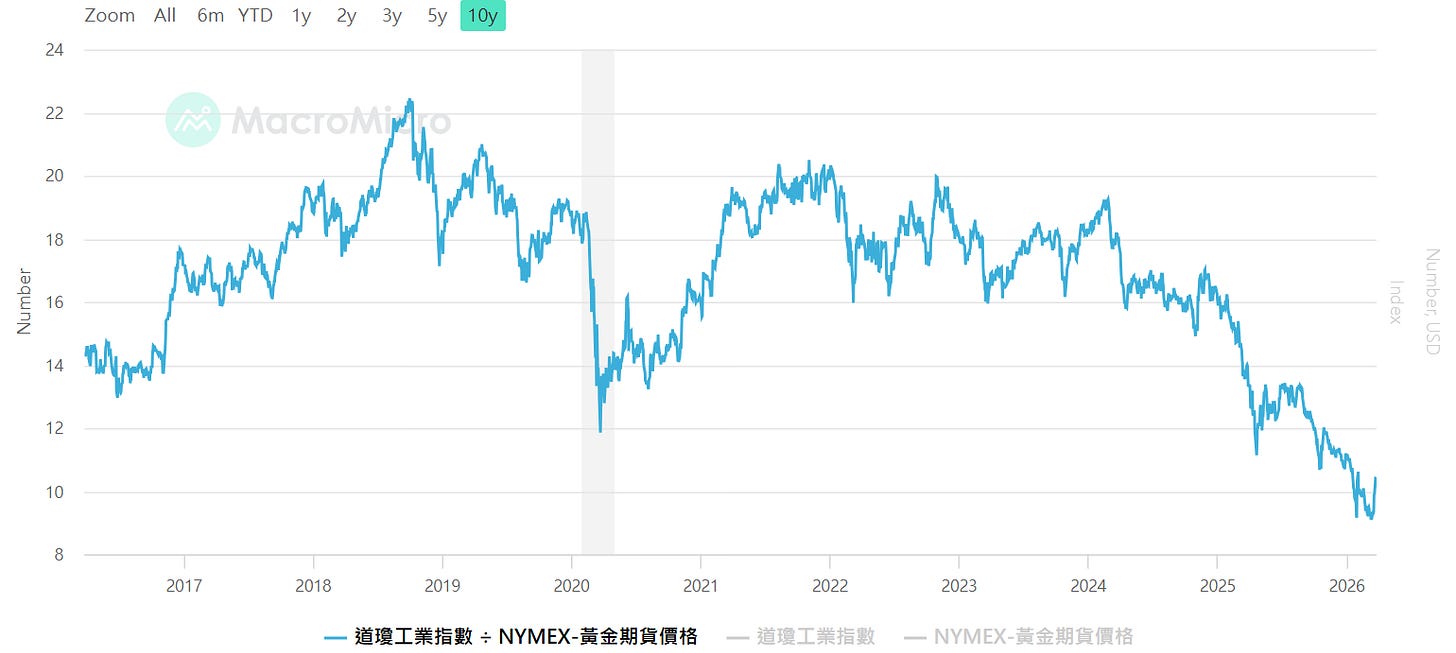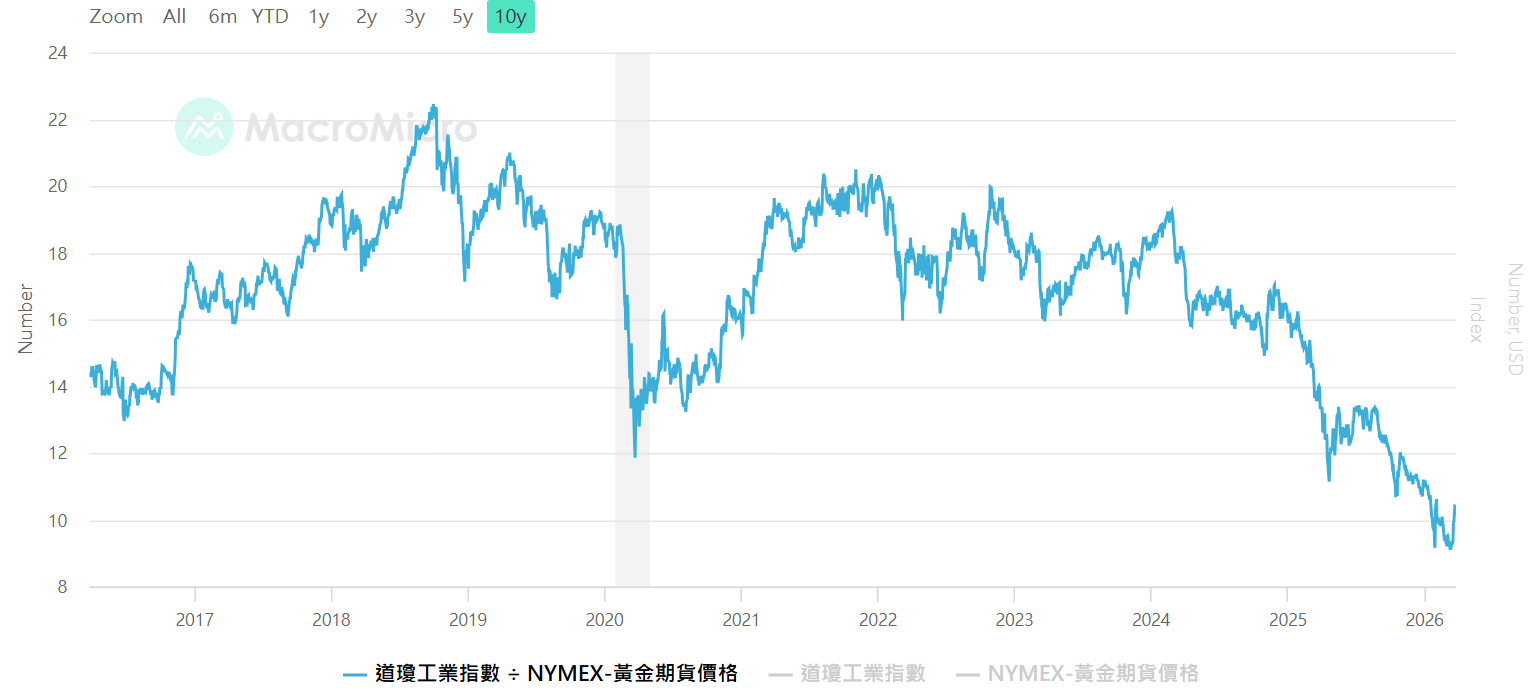 道瓊黃金比,資料來源 : 財經M平方,警戒值 : 5