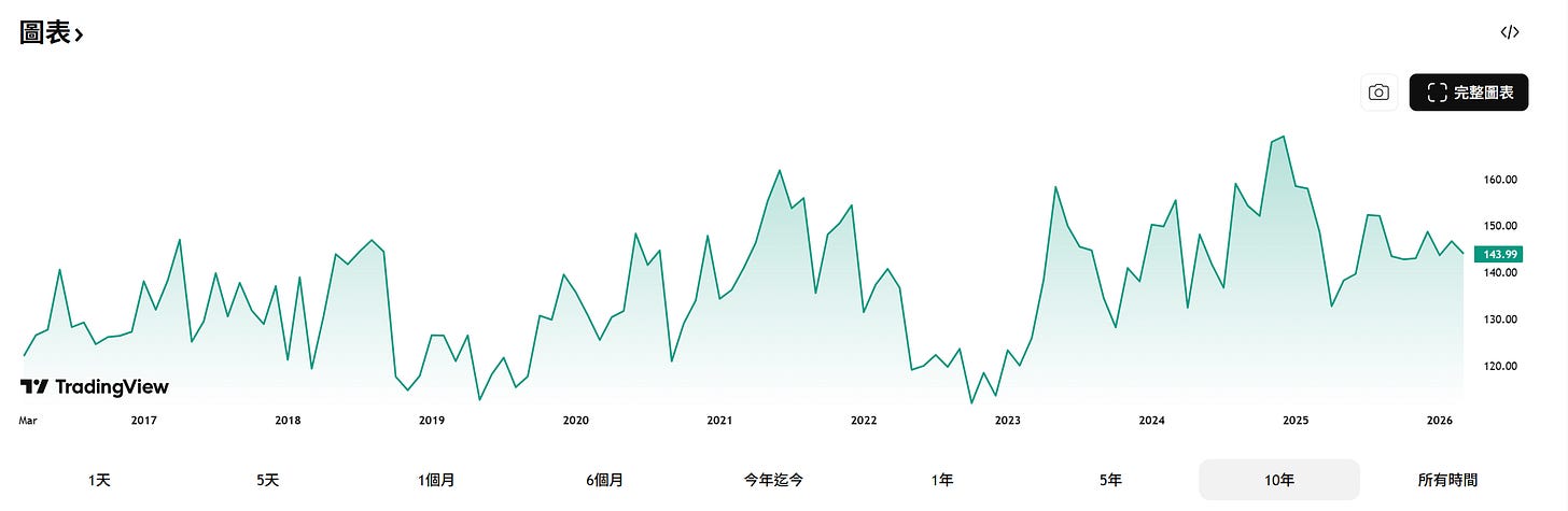 台股融資維持率,140以下留意是否已達相對低檔,來源:MacroMicro 財經M平方