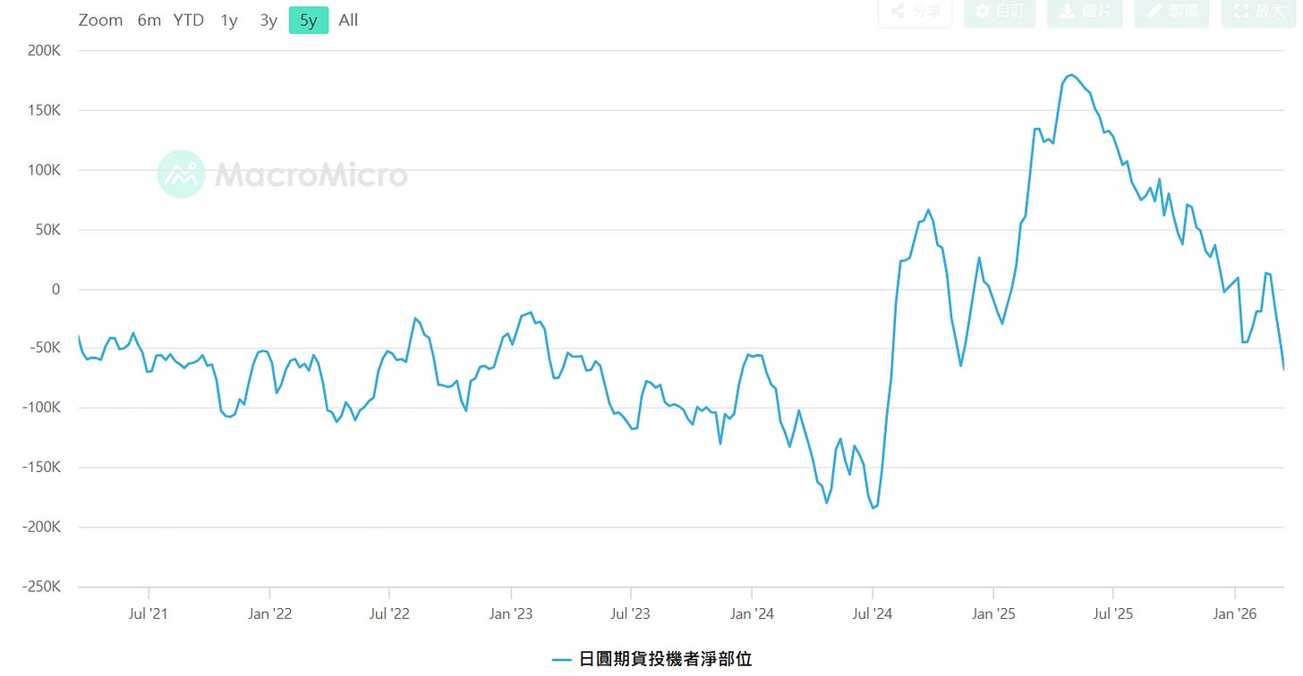 日圓期貨投機者淨部位,資料來源 : 財經M平方