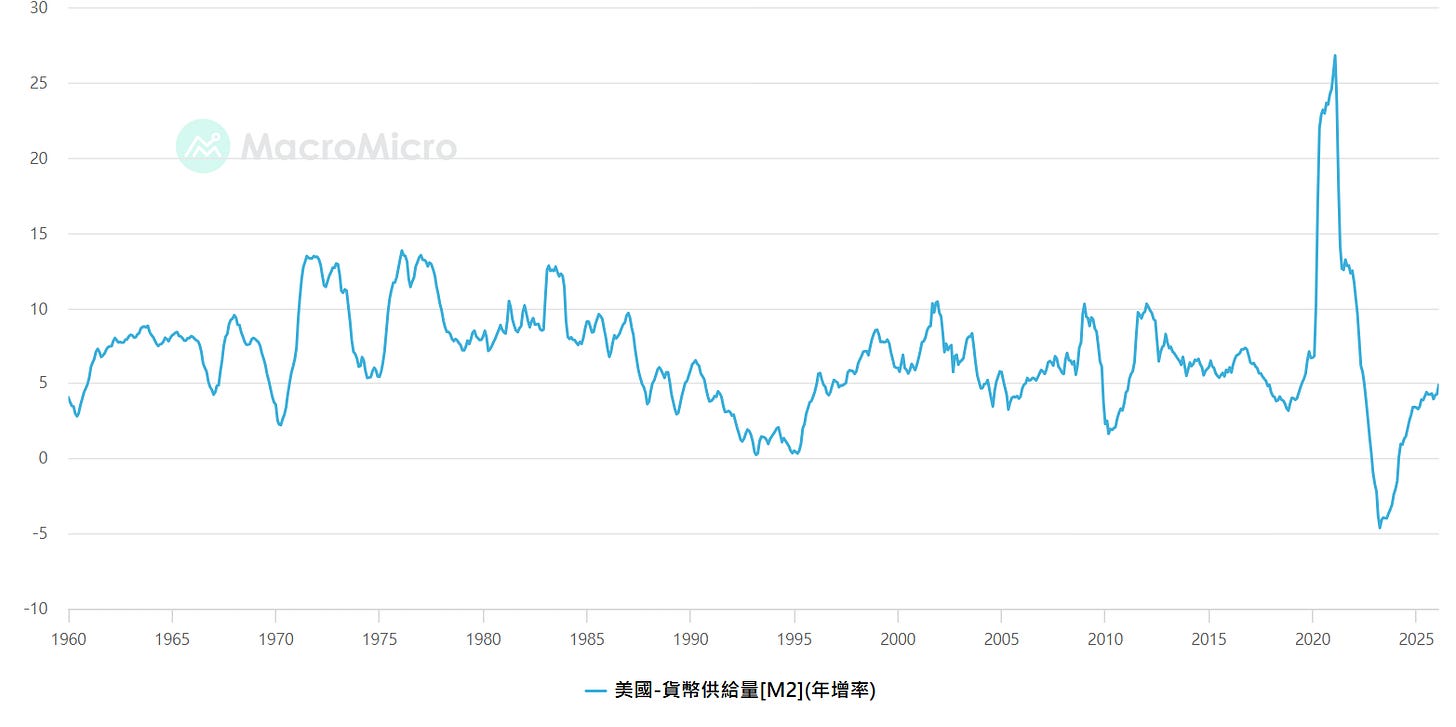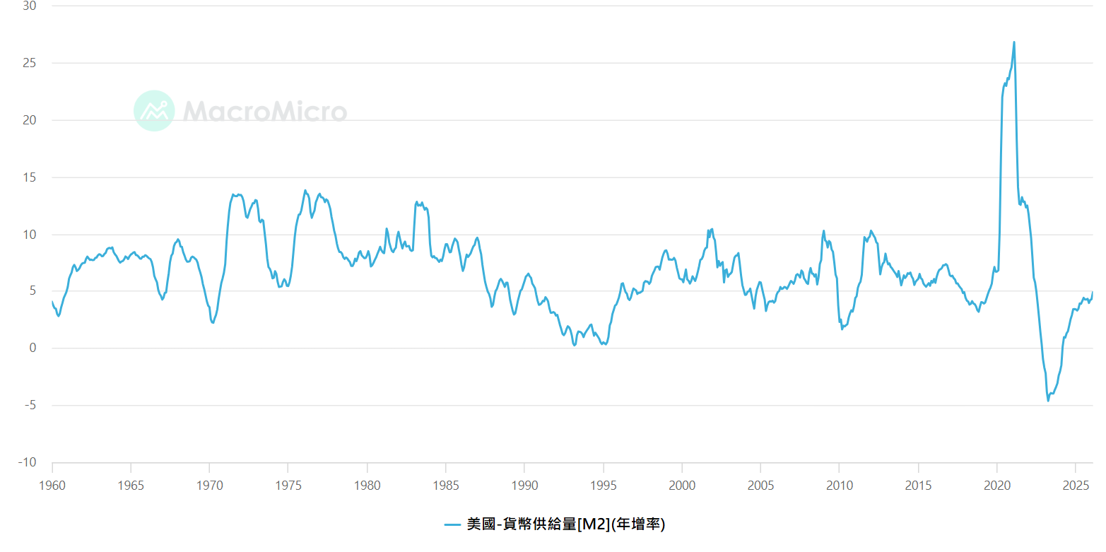 美國M2年增率,資料來源 : MacroMicro財經M平方