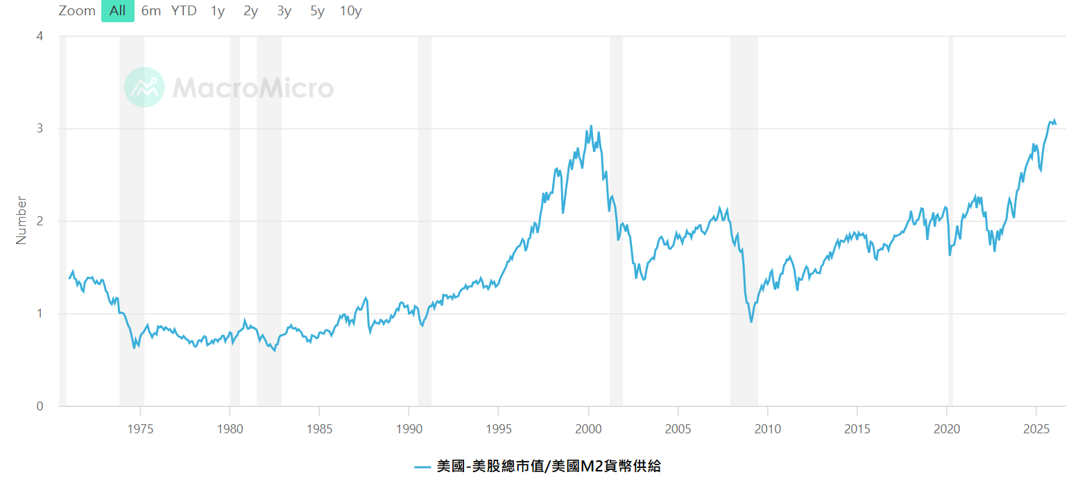 美股市值/M2,資料來源 : MacroMicro財經M平方