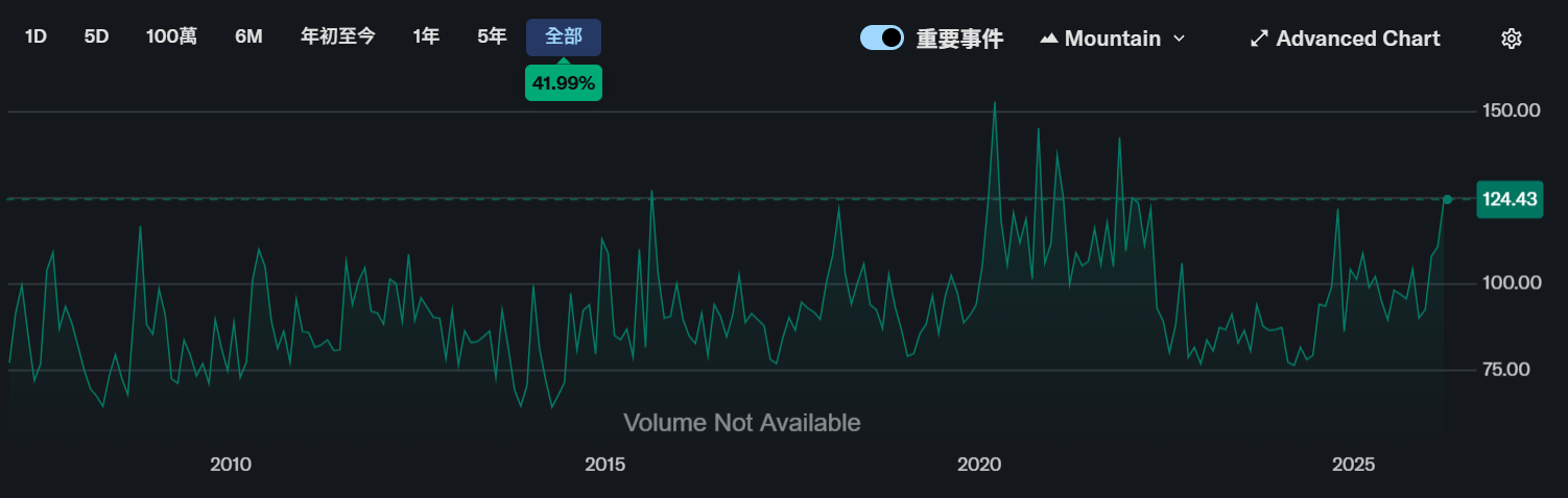VVIX :如果 VIX 是「市場的恐懼」,那麼 VVIX 就是解讀為「市場對恐懼會增強的恐懼」,VVIX若在110-120,代表避險需求正在強化;若逼迫近150以上,市場已陷入「恐懼的波動」,資料來源 : yahoo finance