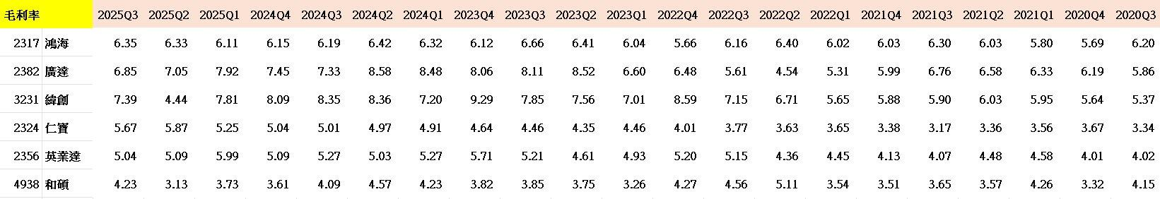 張會計師點出了一個很關鍵的點,這些大廠在做的是「連工帶料」的生意,那些昂貴的晶片、零組件全算進了營收,分母被墊得高不可攀,毛利率自然看起來薄如蟬翼,如果把這些代墊的材料費拿掉,純粹看服務的附加價值,他們的獲利能力其實並不差。