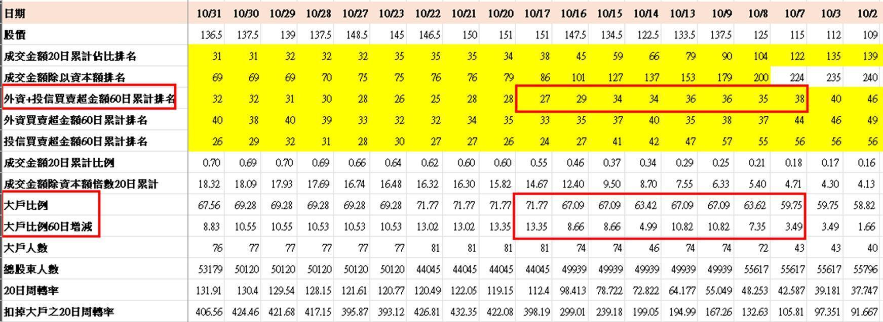 但關鍵點則是大戶比例,在第一波上漲階段從59.75%增加到71.77%(增加12%),短時間大幅增加(至於增加的背景是誰,只能靠自己推測了)