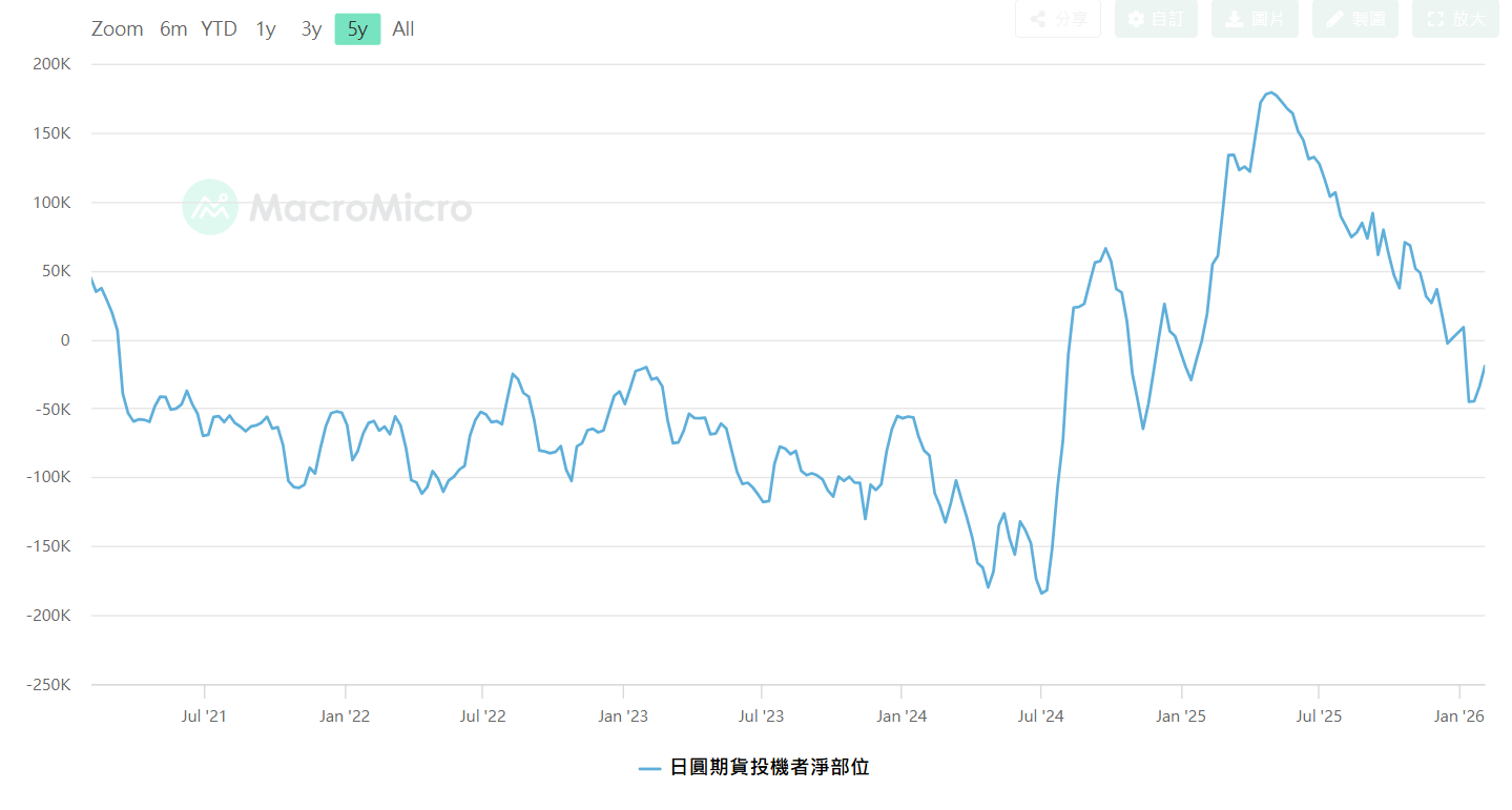 日圓期貨投機者淨部位,資料來源 : 財經M平方