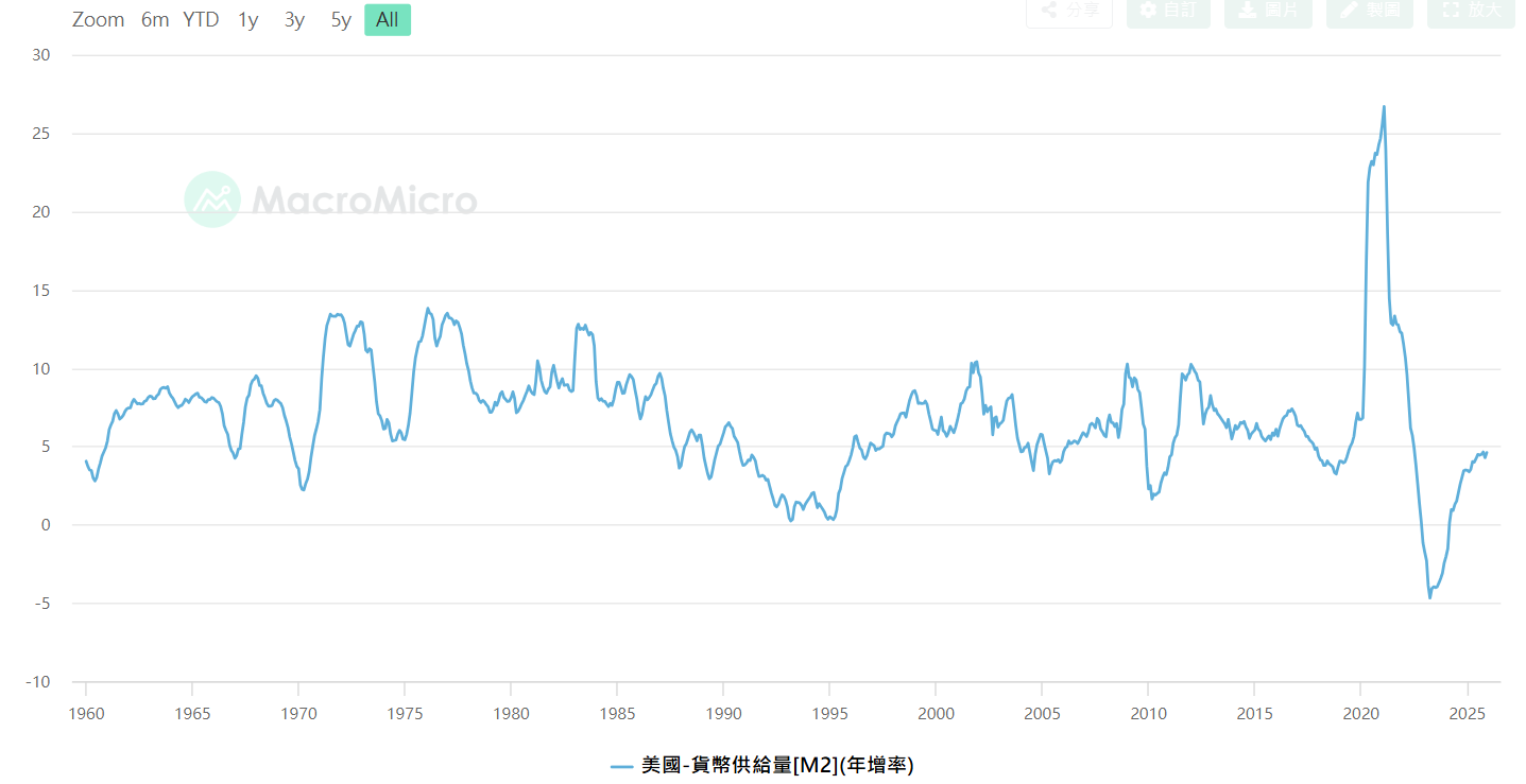 美國M2年增率,資料來源 : MacroMicro財經M平方