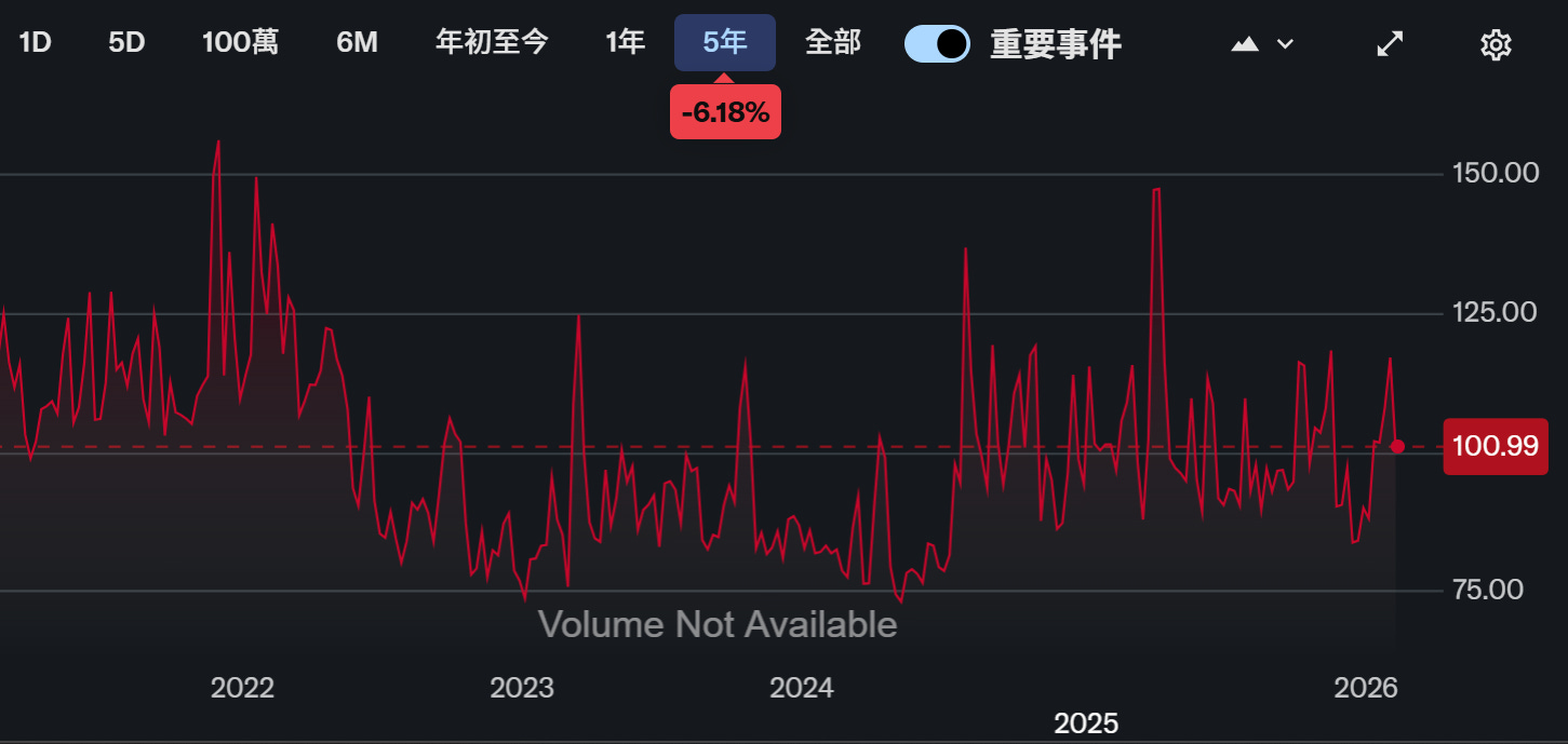 VVIX :如果 VIX 是「市場的恐懼」,那麼 VVIX 就是解讀為「市場對恐懼會增強的恐懼」,VVIX若在110-120,代表避險需求正在強化;若逼迫近150以上,市場已陷入「恐懼的波動」,資料來源 : yahoo finance