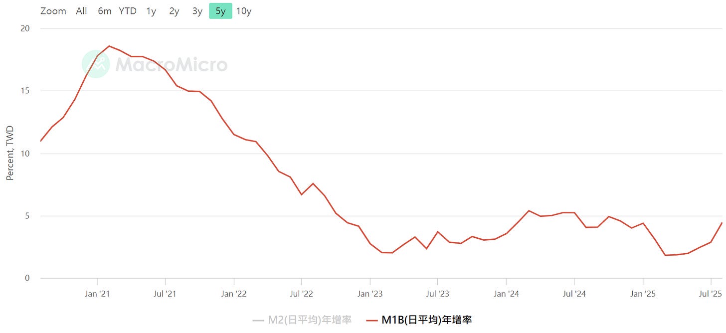 M1B年增率,若負值為警訊,資料來源:MacroMicro 財經M平方