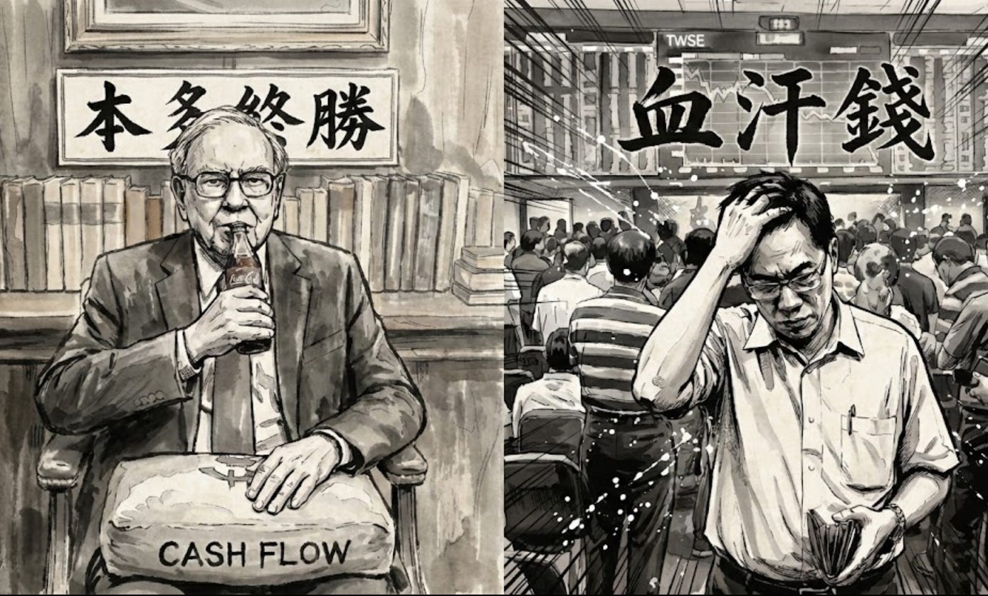 我想這就是投資最迷人的地方,我們尊敬前輩的智慧,但我們必須帶著懷疑的眼光去實踐,畢竟我們不是在奧馬哈的辦公室裡喝可樂,我們是在這片充滿變數、波動與機會的土地上,用自己的血汗錢在做實驗。