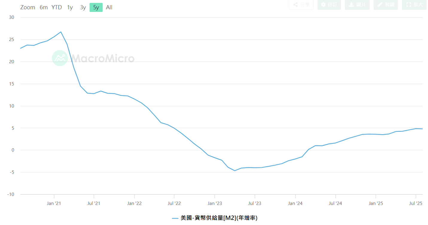 美國M2年增率,資料來源 : MacroMicro財經M平方