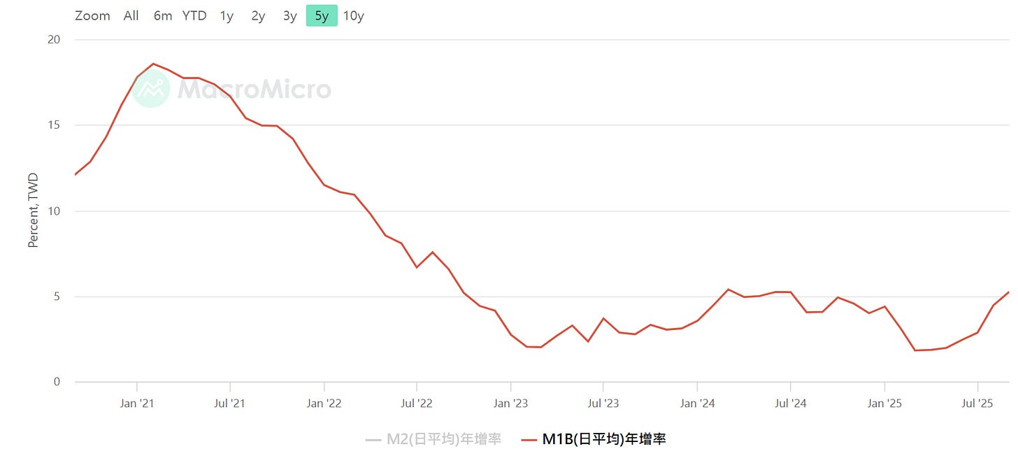 M1B年增率,若負值為警訊,資料來源:MacroMicro 財經M平方