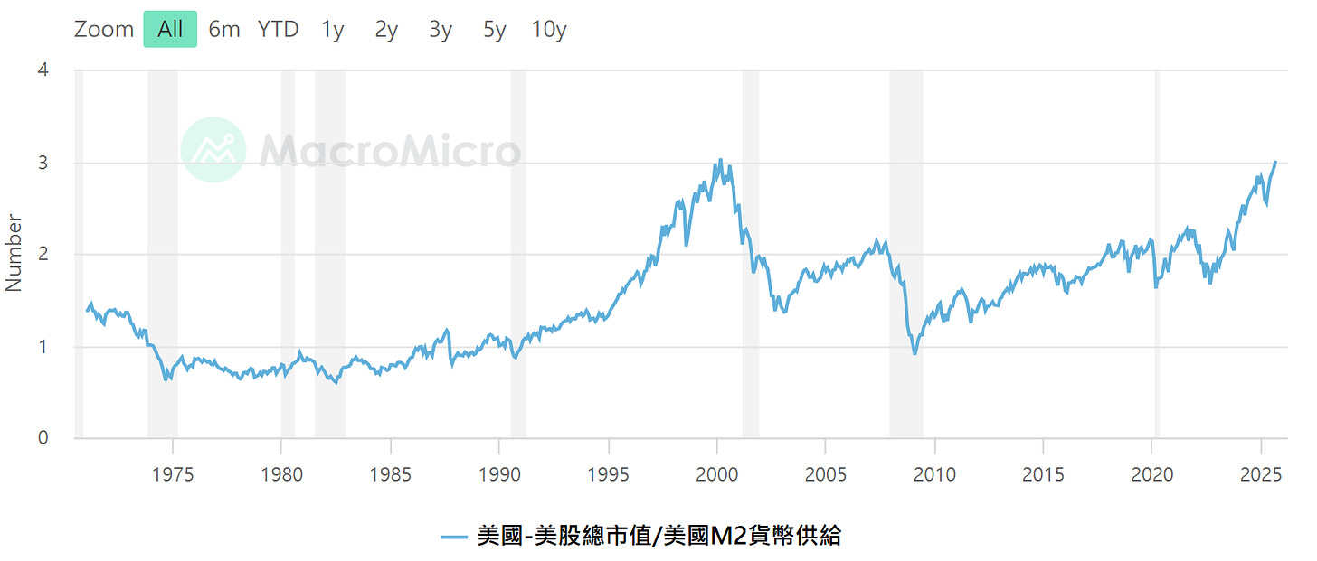 美股市值/M2,資料來源 : MacroMicro財經M平方