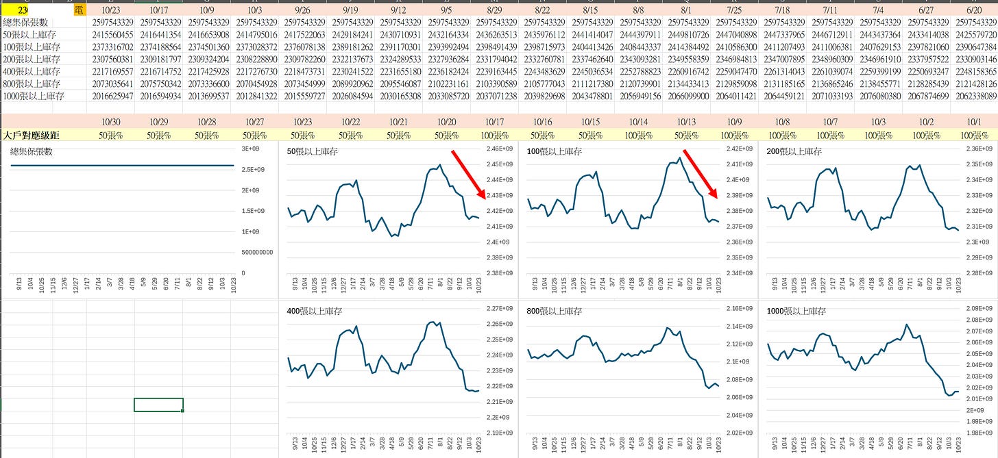 因此我剛剛新做了一個「大戶持股/大戶人數分級檢視圖」的 Excel 檔,