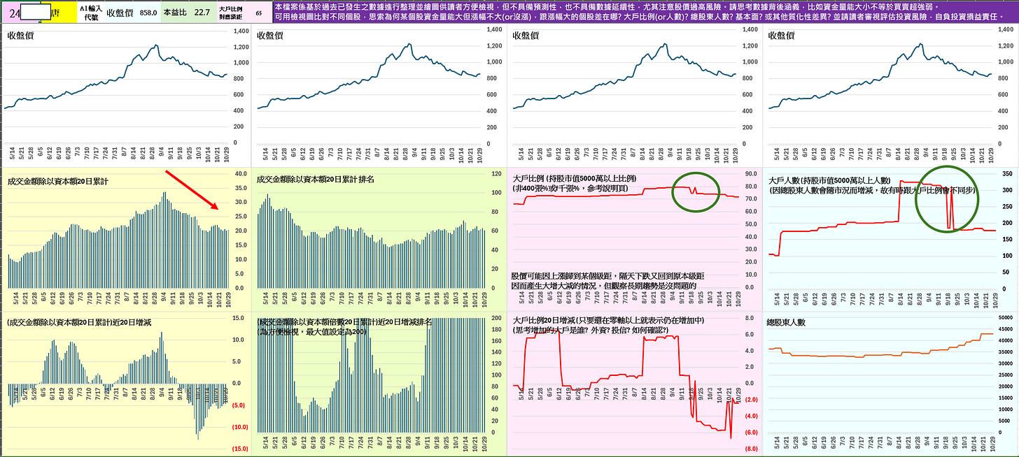 2️⃣ 關於上述某電子零組件股「大戶人數上升但比例下降」的情況