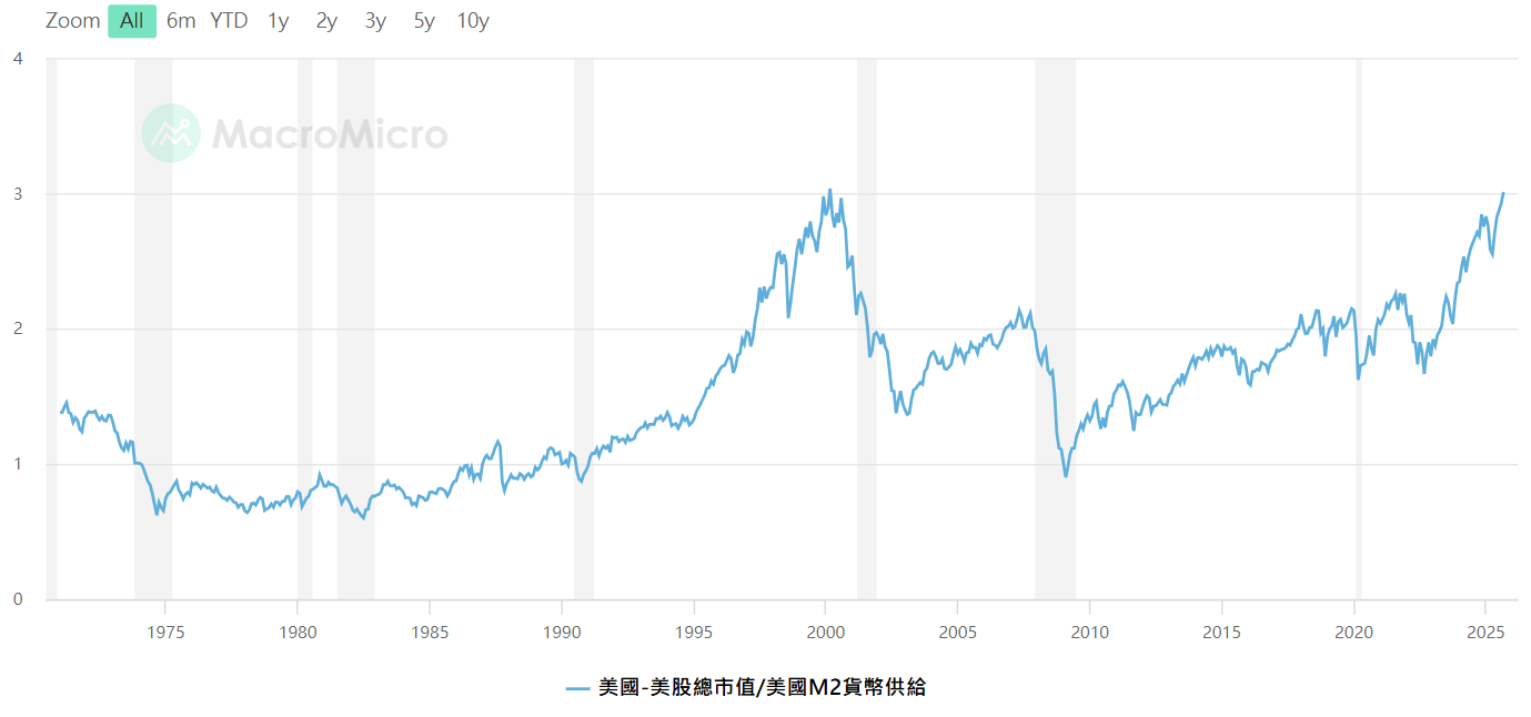 美股市值/M2,資料來源 : MacroMicro財經M平方