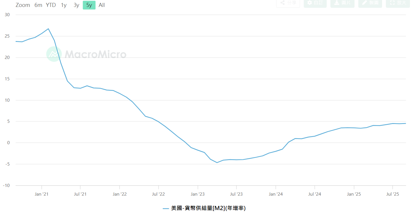 美國M2年增率,資料來源 : MacroMicro財經M平方