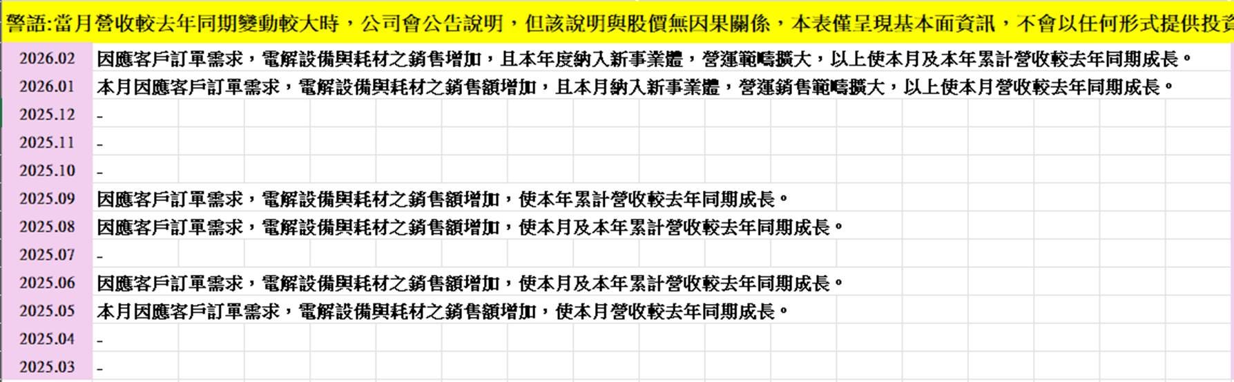 這家公司的財報數據很不錯,不管是月營收或營業利益,以及四季EPS都是持續成長中,月營收的成長公司也有提出說明。(參考下圖)