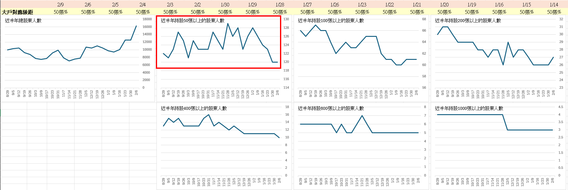 最讓我百思不解的是,連大戶比例、大戶人數,在數據表上也顯示得平淡無奇,幾乎看不到明顯的集中趨勢,可是股價卻持續穩健地上漲。