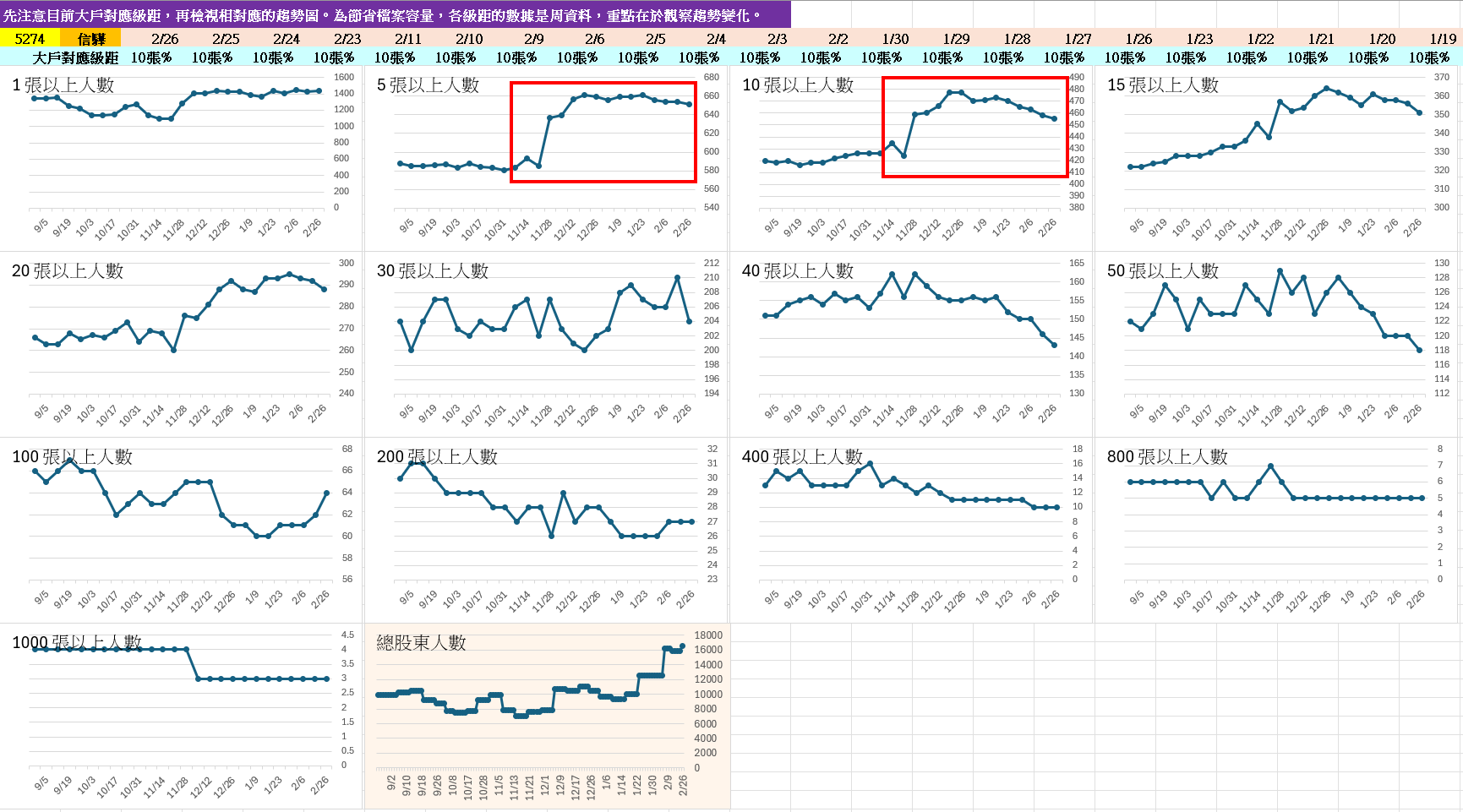 直到昨天看到小曹兄,提到了另外一檔高價股2360致茂,我回頭檢視致茂跟信驊的大戶人數細節,這才驚覺,原來我看漏的不是訊號,而是「刻度」。