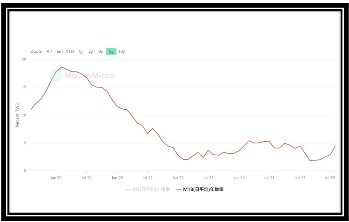 M1B年增率,若負值為警訊,資料來源:MacroMicro 財經M平方