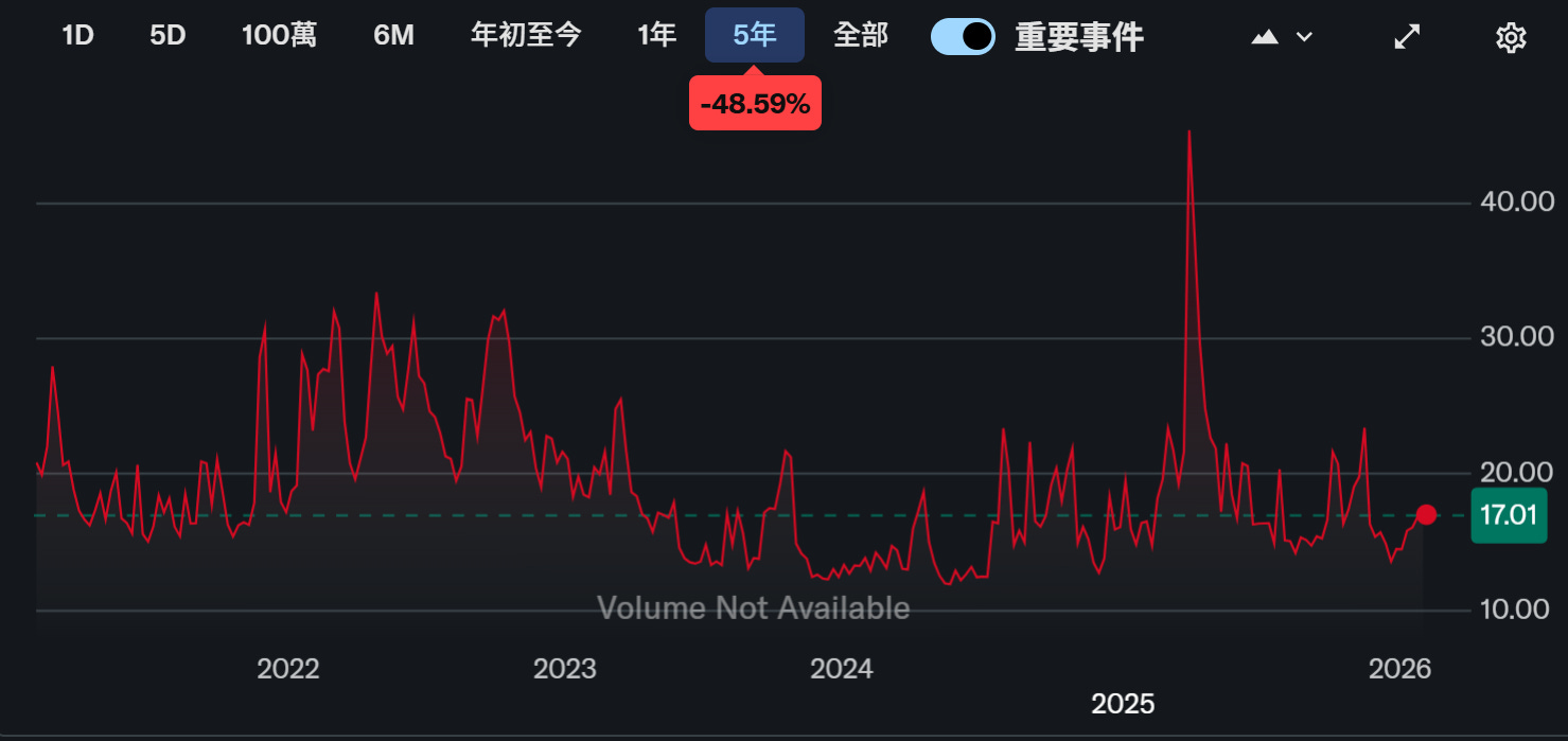 VIX :期權市場對未來 30 天標普 500 波動率預期,VIX長期平均約在19左右。若低於15,代表市場平靜;超過25,開始進入不安;若衝破30或40,多半是危機時刻,但它只能告訴你市場「表面的恐懼」,資料來源 : yahoo finance