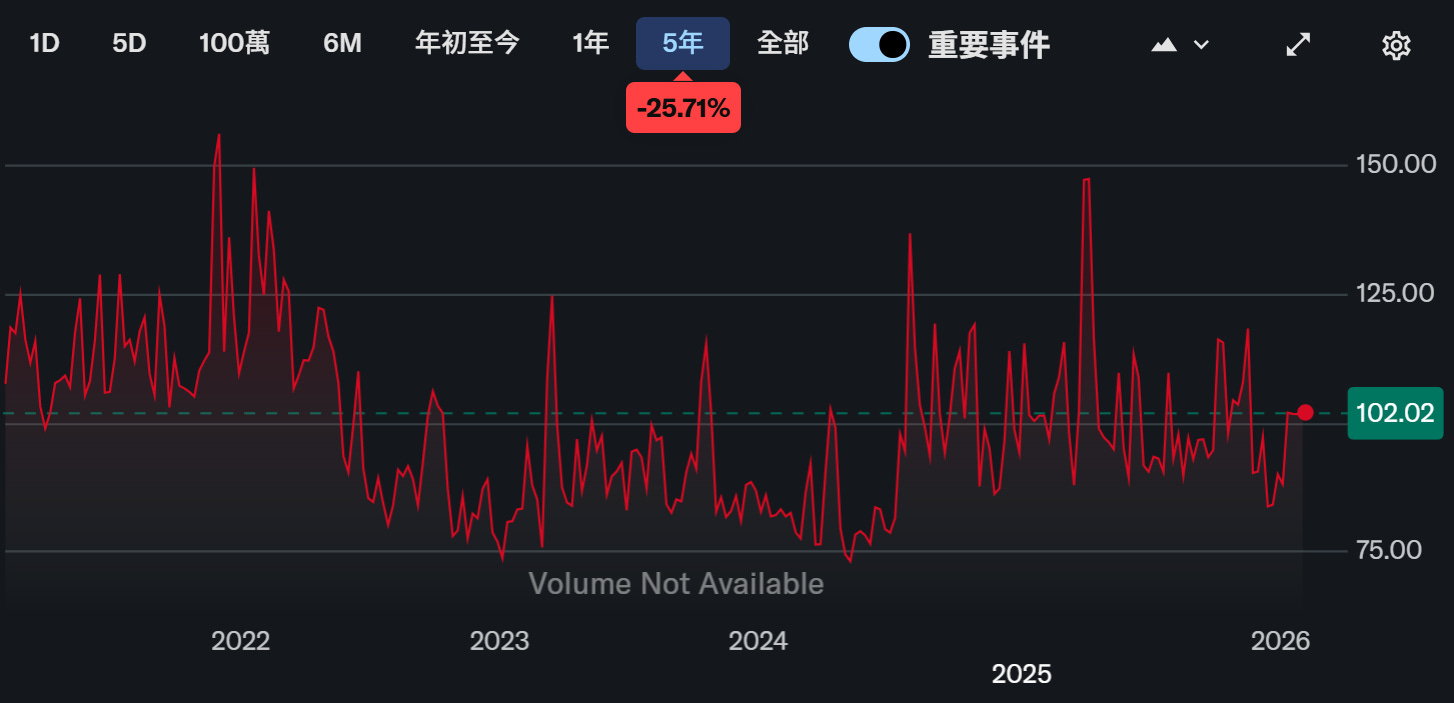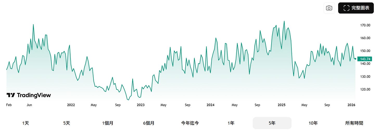 VVIX :如果 VIX 是「市場的恐懼」,那麼 VVIX 就是解讀為「市場對恐懼會增強的恐懼」,VVIX若在110-120,代表避險需求正在強化;若逼迫近150以上,市場已陷入「恐懼的波動」,資料來源 : yahoo finance