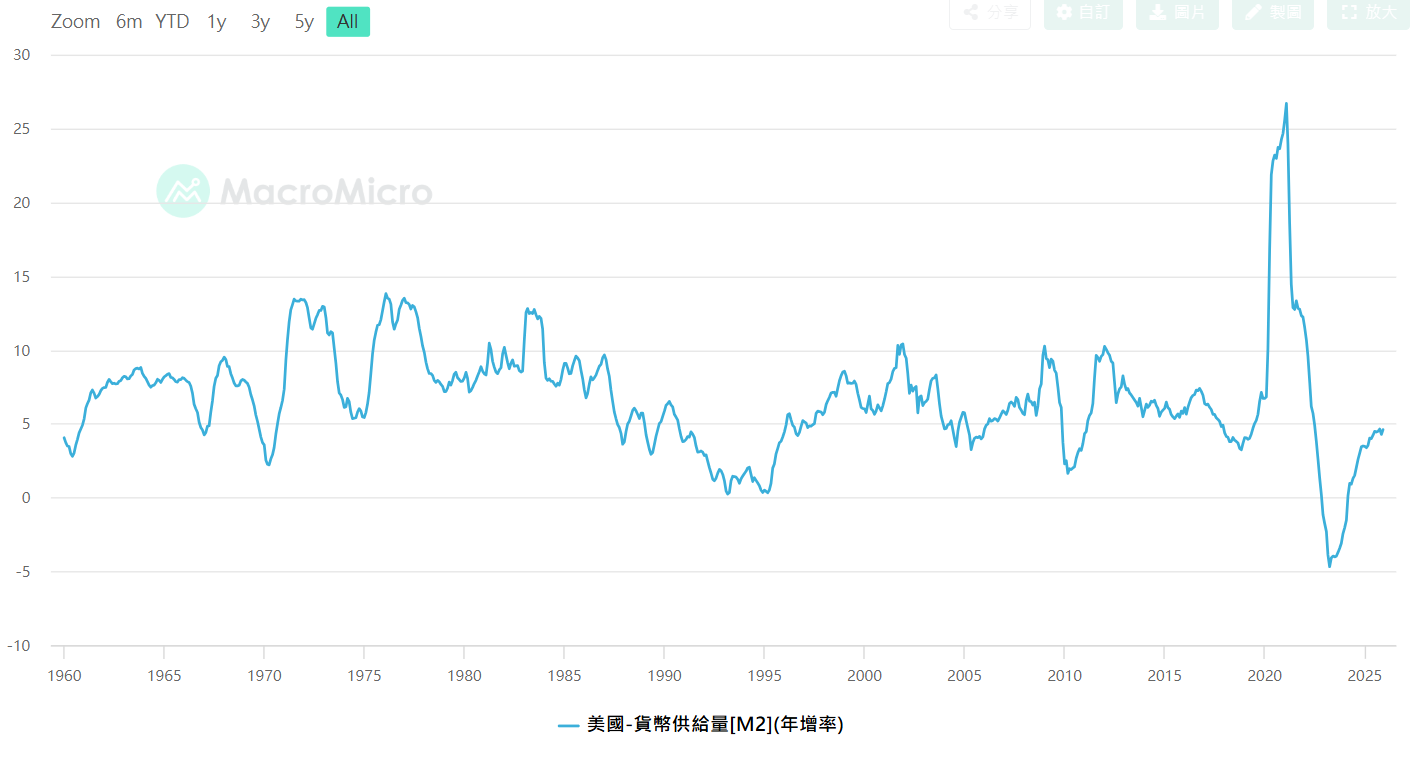 美國M2年增率,資料來源 : MacroMicro財經M平方