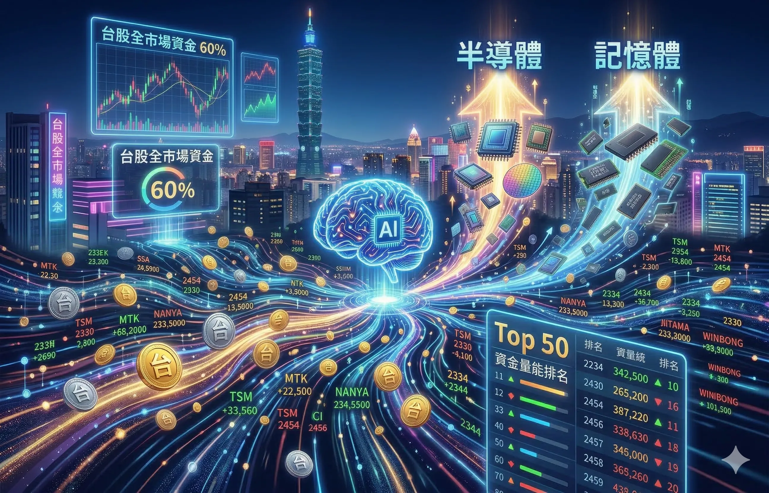 剛剛跟Gemini 玩了一個實驗,目前上市櫃前50名的資金量能,已經佔了全市場的六成,這顯示資金高度集中。所以我把全上市櫃公司的資金量能進行每日排序,雖然每天看感覺差不多,第一名永遠是台積電,但只要...