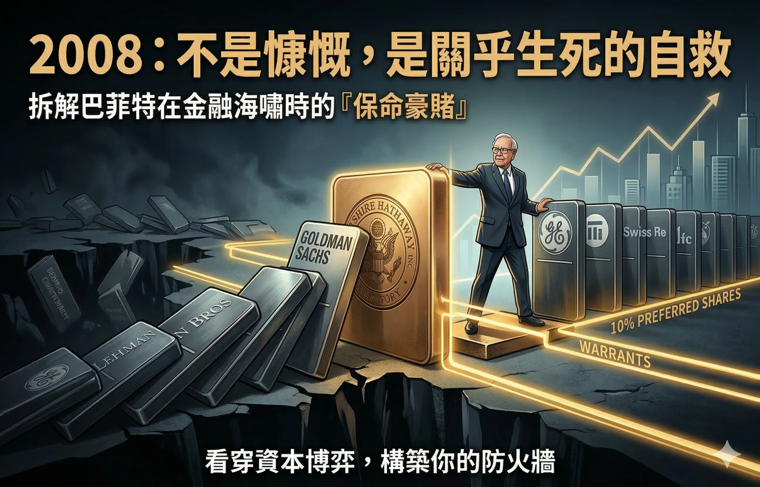 ▋ 2008年的不平等條約 很多人說巴菲特是股神,說他在2008年金融海嘯時大舉入市,是因為他看見了別人看不見的價值,說他「別人恐懼我貪婪」。 但如果仔細拆解他當年,對高盛、通用、瑞士再保險的投...