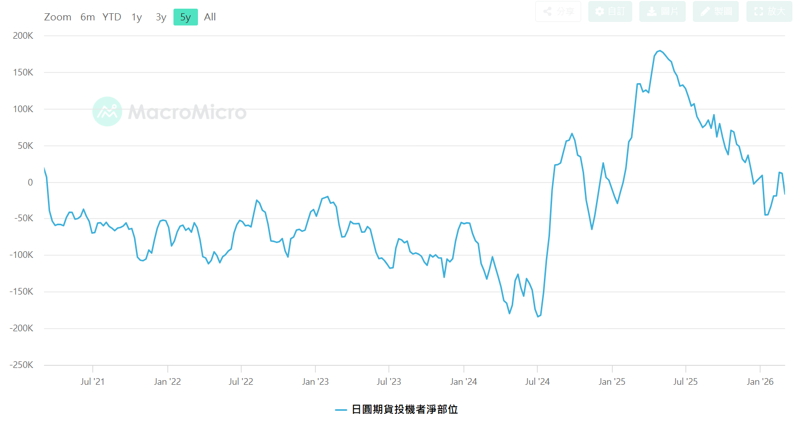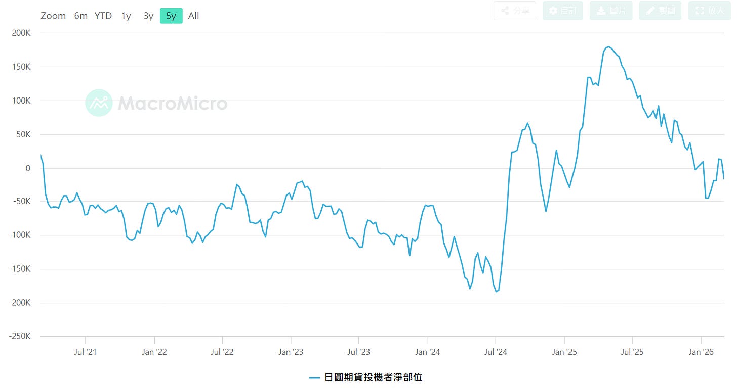 日圓期貨投機者淨部位,資料來源 : 財經M平方