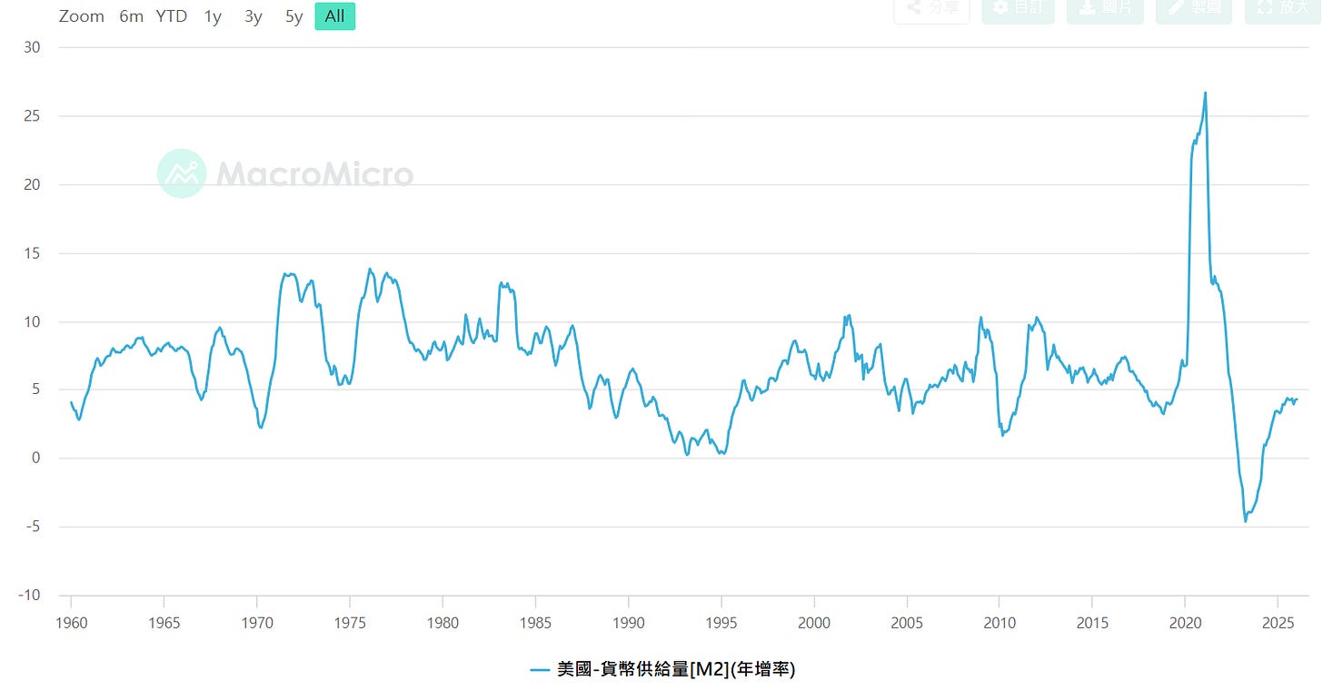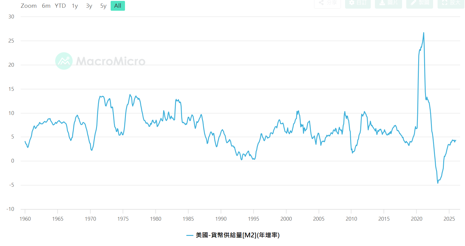 美國M2年增率,資料來源 : MacroMicro財經M平方