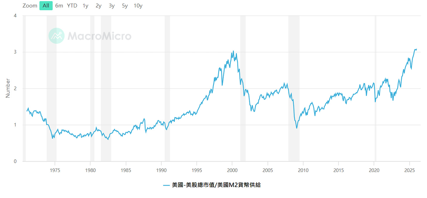美股市值/M2,資料來源 : MacroMicro財經M平方